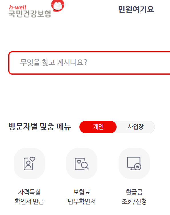 더 건강한 국민의 삶을 위해 모바일로 편리하게 민원서비스를 이용하세요. 1. 민원여기요 - 자격득실확인서, 보험료 납부확인서 등 증명서 5종을 제출기관에 팩스로 보낼 수 있습니다. - 보험
