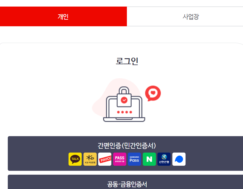 요새는 간편인증서가 발달하여 인증서를 통해 로그인을 하시면 됩니다.