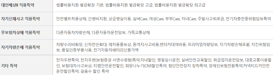 위의 여러 특약은 자신이 자녀가 있는 지, 부모님과 같이 차를 타고 다니는 일이 많은 지 등 여러 자신의 상황에 맞게 특약조건을 넣으셔도 안 넣으셔도 무방합니다.