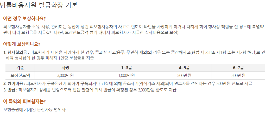 KB다이렉트 자동차보험 보장내용