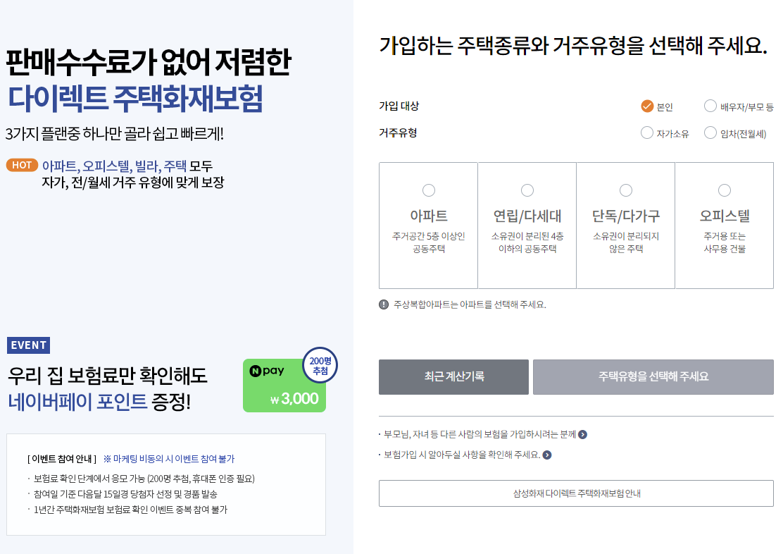 삼성화재 다이렉트 주택화재보험 보장내용 보험료 혜택 알아보기