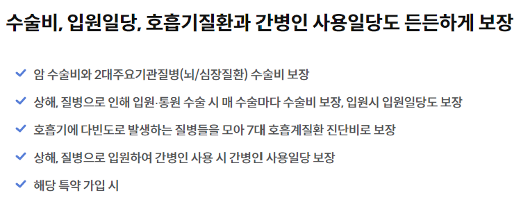 - 2대 주요기관질병 수술비, 7대 호흡기질환 진단비는 최초 보험가입 후 1년미만 보험금 지급사유 발생시 50% 감액 지급