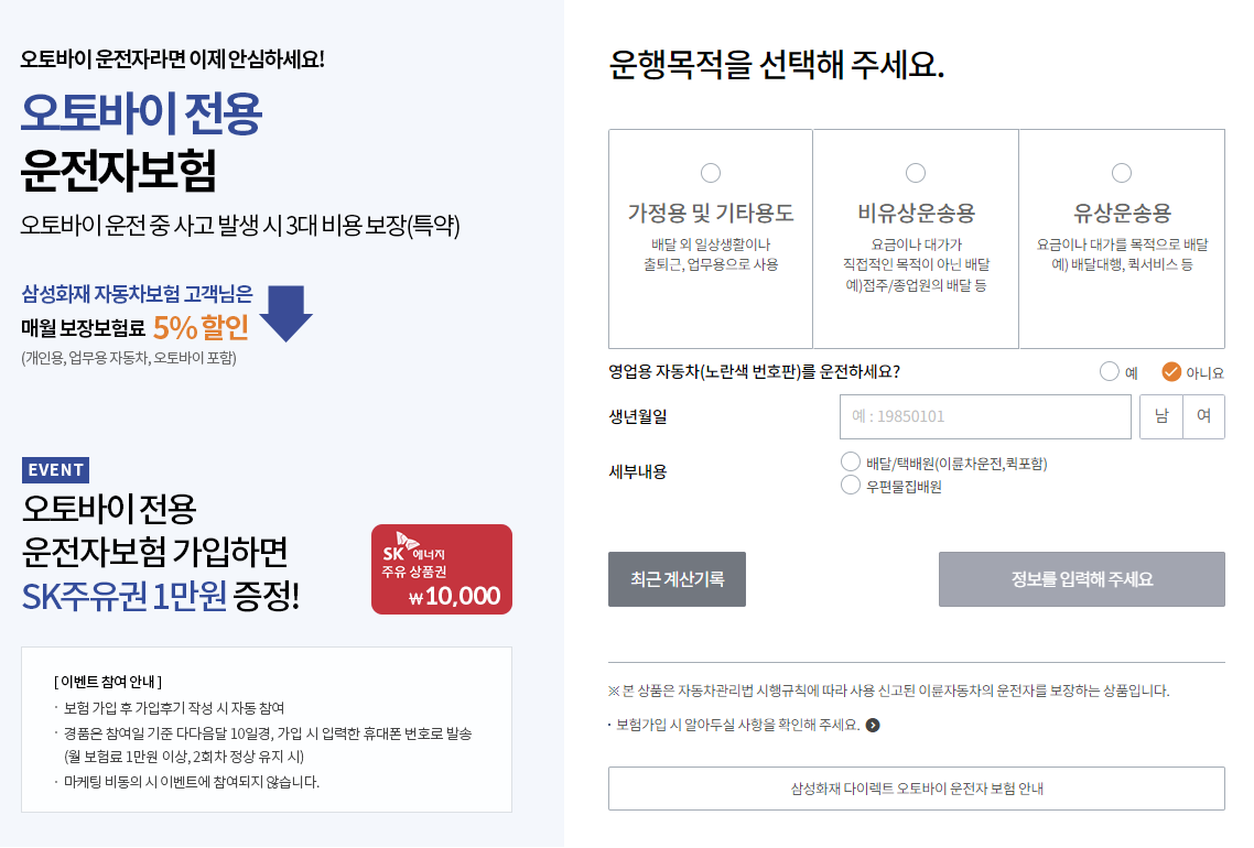 삼성화재 오토바이 전용 운전자보험 보장내용 혜택 보험료 알아보기