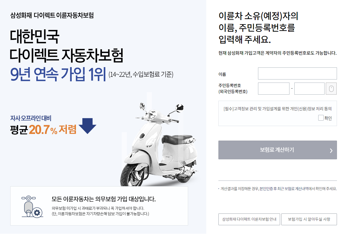 삼성화재 이륜차 다이렉트 보험 보장내용 보험료 혜택 알아보기