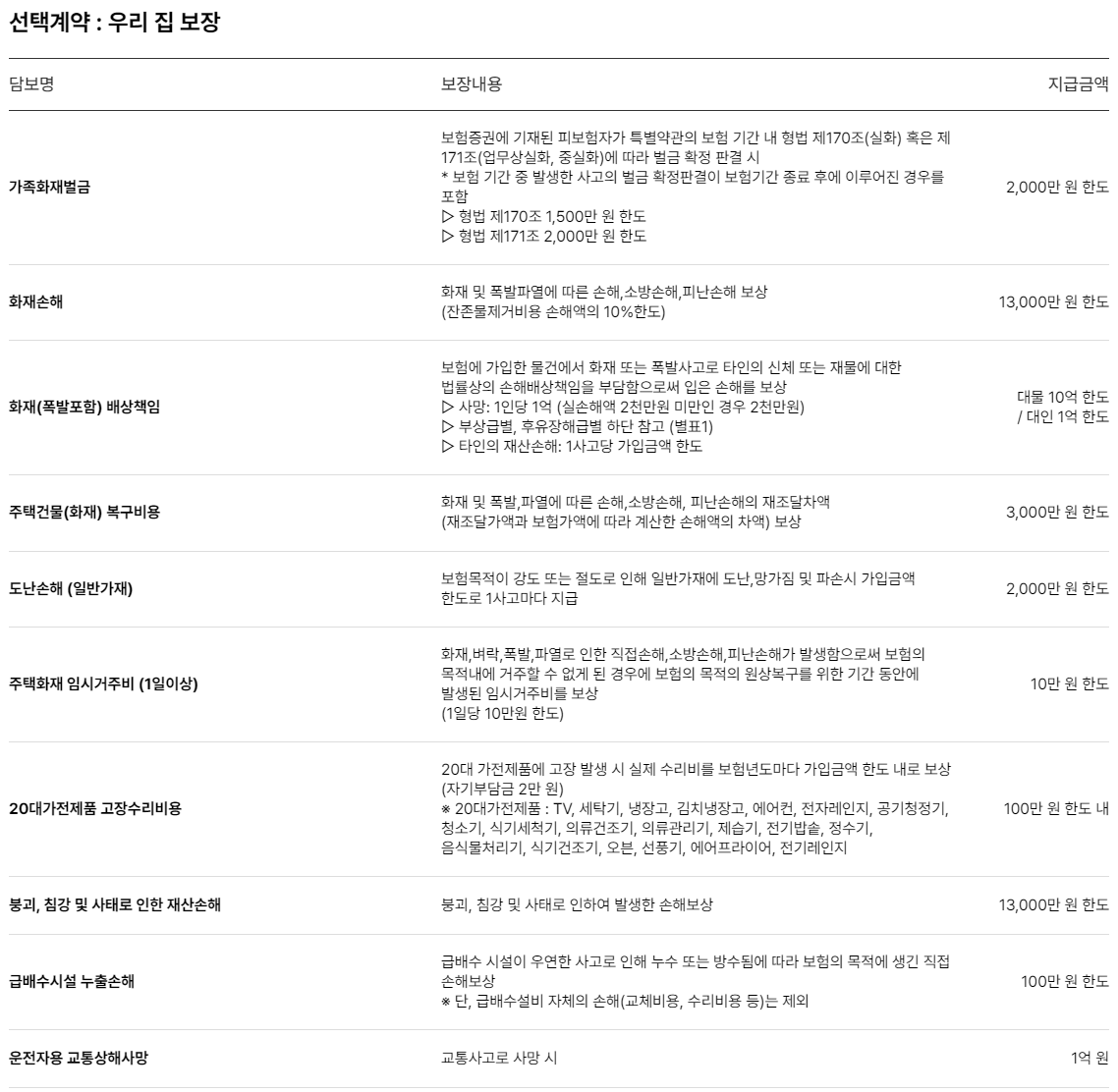 메리츠화재 다이렉트 주택화재보험 보장내용