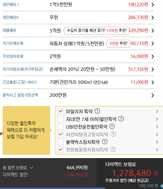 보험료는 사람마다 할인특약, 나이 등 조건이 다르기 때문에 실제로 조회해보시는 것이 가장 정확합니다.