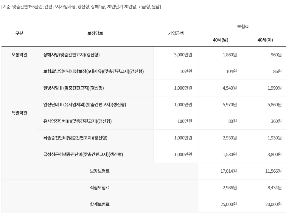 위 보험료는 예시일 뿐이며 납입기간, 가입나이, 성별, 상해급수, 운전유형, 가입담보 등에 따라 달라지므로 보험료는 직접 조회해보시는 것이 가장 정확합니다.