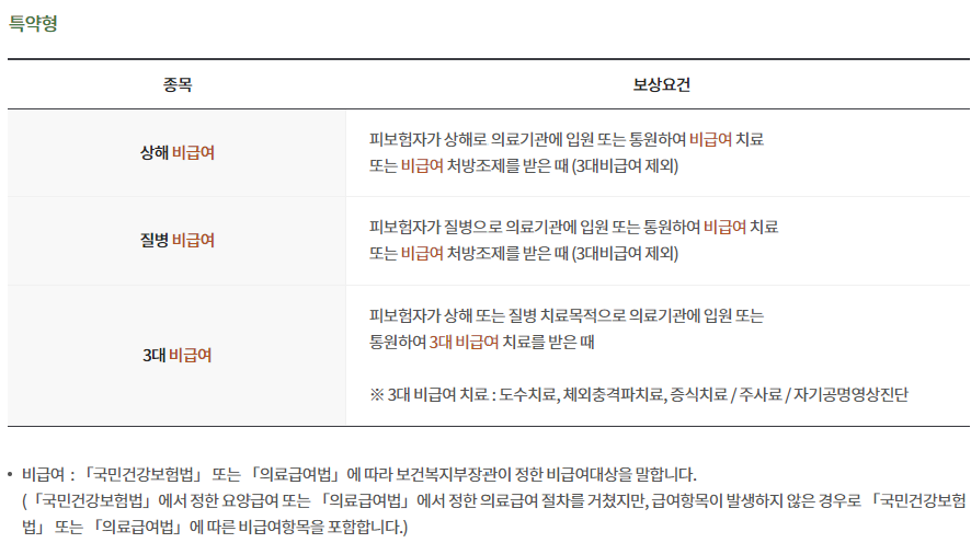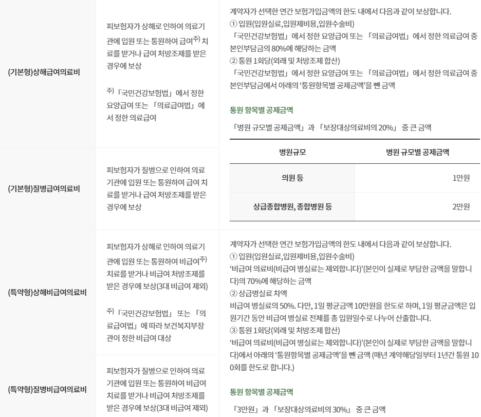 - 기타보장특별약관 가입 없이 실손의료비 보장만을 단독으로 가입할 수 있습니다.