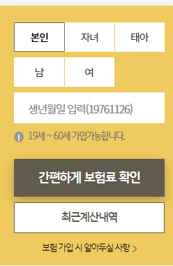 - - 위 보험료는 가입예시기준으로 산출된 보험료로서 가입자의 성별, 연령 및 직종, 납기/만기 등에 따라 달라질 수 있습니다.