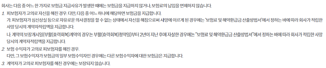 피보험자가 재해 이외의 원인으로 사망한 경우에는 사망 당시의 계약자적립액을 지급하여 드리고 이 계약은 더 이상 효력을 가지지 않습니다.