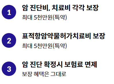 7. “암의 직접적인 치료”에는 식이요법, 명상요법 등 암의 제거 또는 암의 증식 억제를 위하여 의학적으로 안전성과 유효성이 입증되지 않은 치료, 면역력 강화 치료, 암이나 암 치료로 인하여 발생한 후유증 또는 합병증의 치료는 포함되지 않습니다.