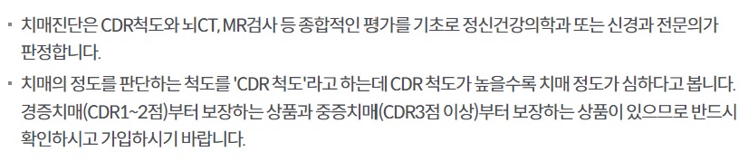 - 5. 피보험자가 치매보장개시일의 전일 이전에 중증치매로 진단 확정되는 경우에는 계약을 무효로 하며 이미 납입한 보험료를 돌려 드립니다.