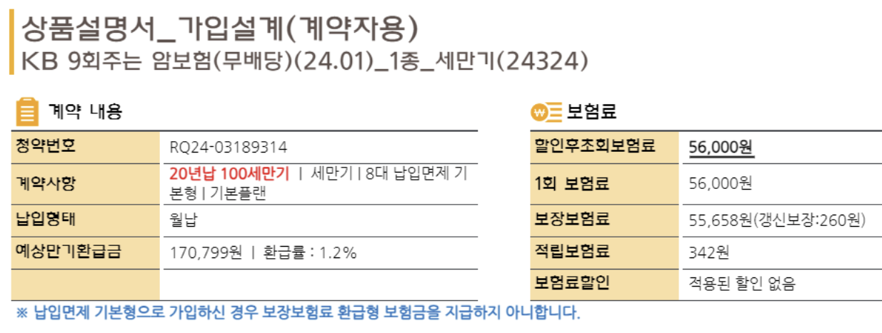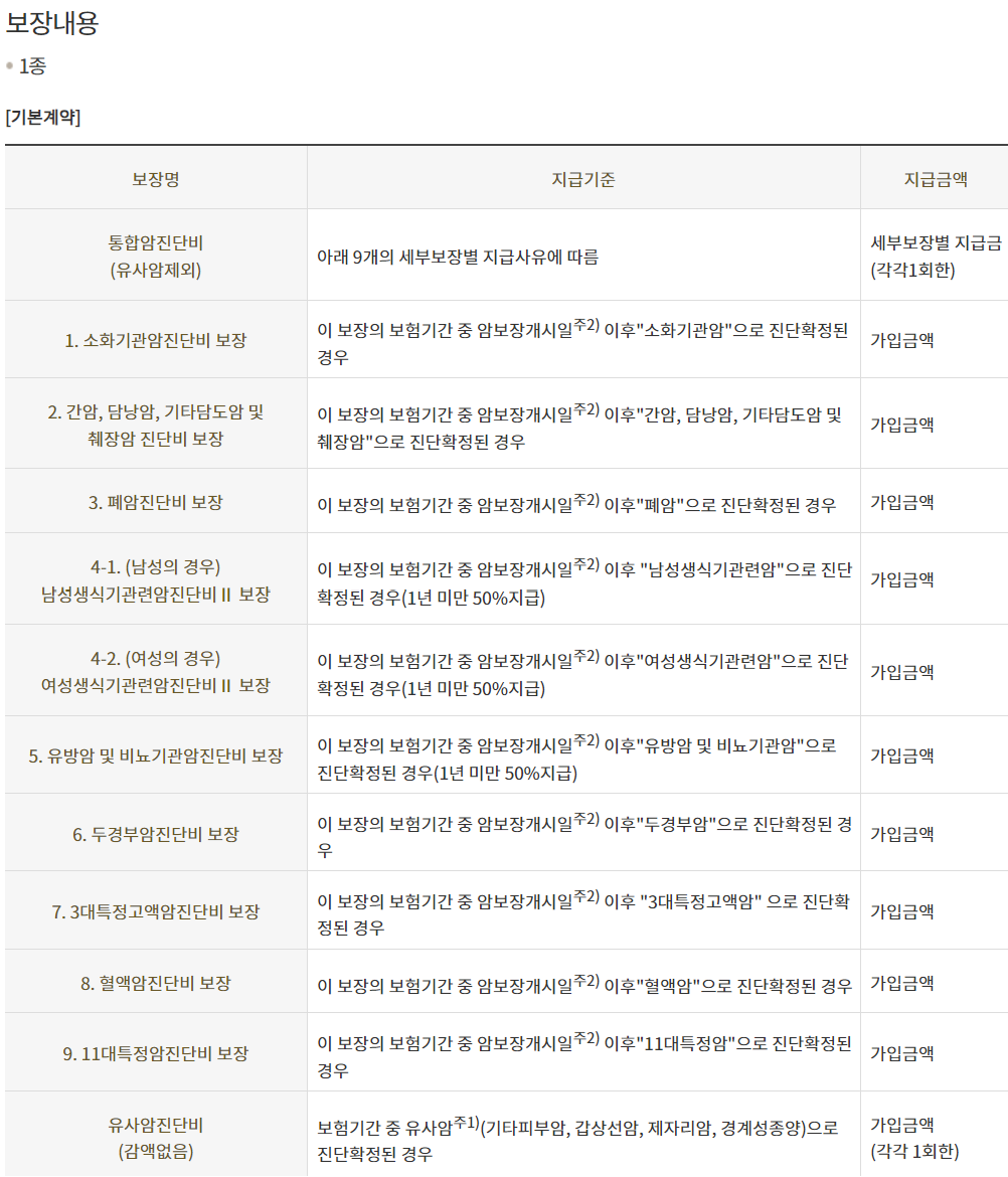 KB암보험 1종 보장내용 기본계약 및 가입조건