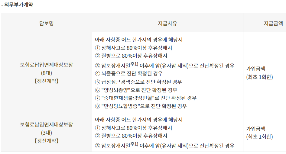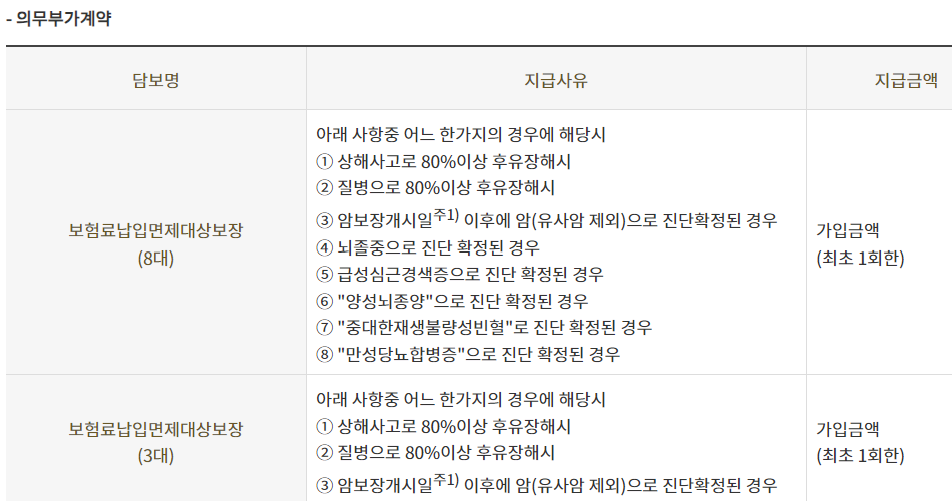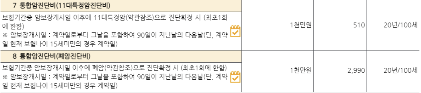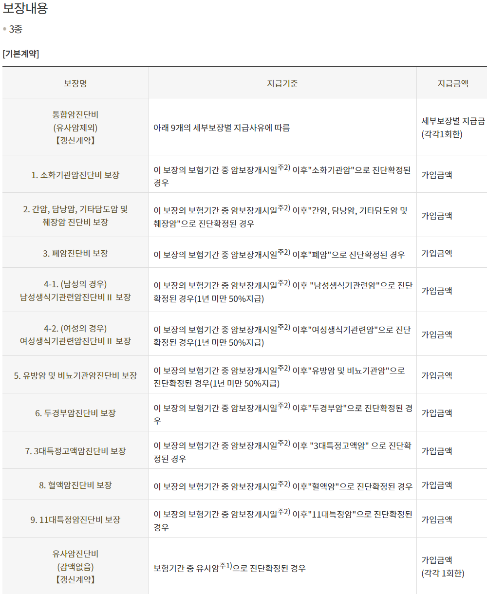 주1) 암보장개시일은 계약일로부터 그날을 포함하여 90일이 지난날의 다음날입니다. 그럼에도 불구하고 계약일 현재 보험나이 15세 미만 피보험자의 경우 암보장개시일은 계약일로 합니다.