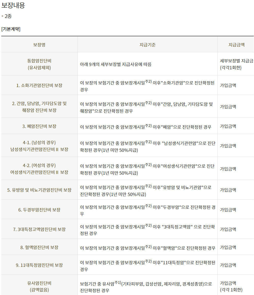2종 암보험 보장내용 및 가입조건