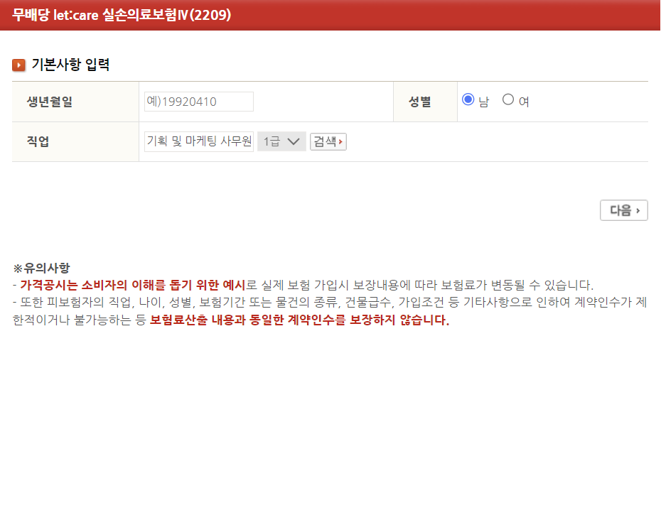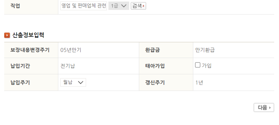 먼저 생년월일, 직업, 성별을 입력합니다.