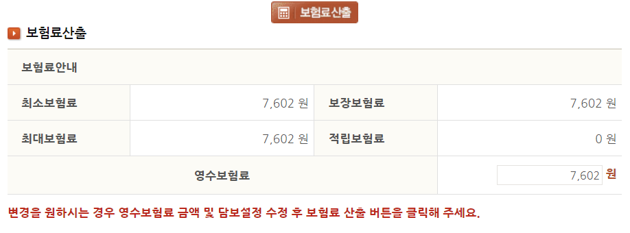 받고싶은 담보사항을 체크합니다. 그리고 아래 보험료 산출을 누르면 아래와 같이 보험료가 조회됩니다.