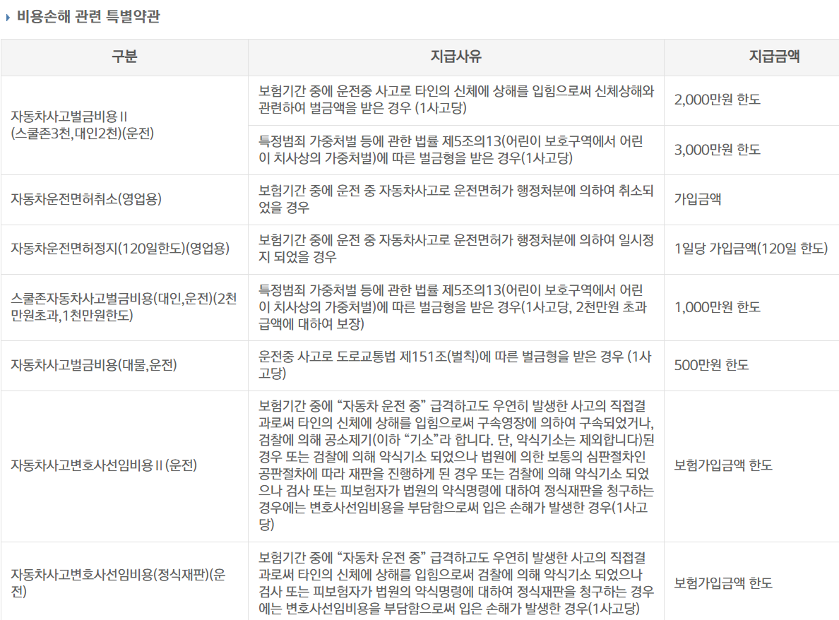 MG손해보험 슬기로운 운전생활보험 보장내용