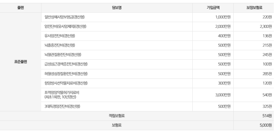 예시보험료는 성별, 나이, 직업, 납입기간, 보험기간 등에 따라 달라 질 수 있습니다.