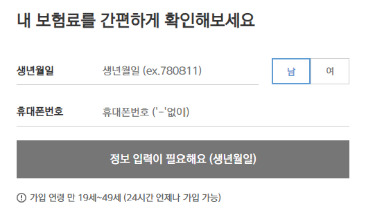 보험료 조회는 생년월일, 성별, 휴대폰번호 입력 후 간단하게 가능합니다.