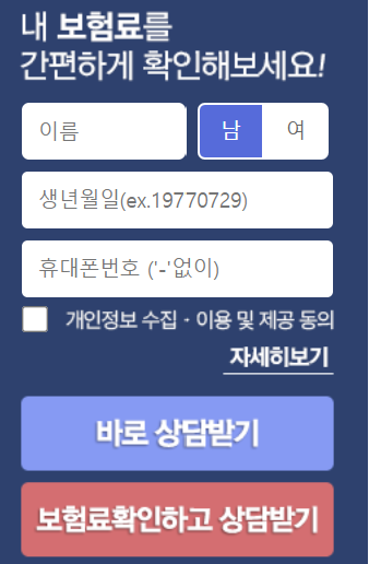 보험료는 사람마다 다르므로 직접 조회해보시고 원하는 선택 특약에 따라도 달라지므로 직접 조회해보시는 것이 가장 정확합니다.