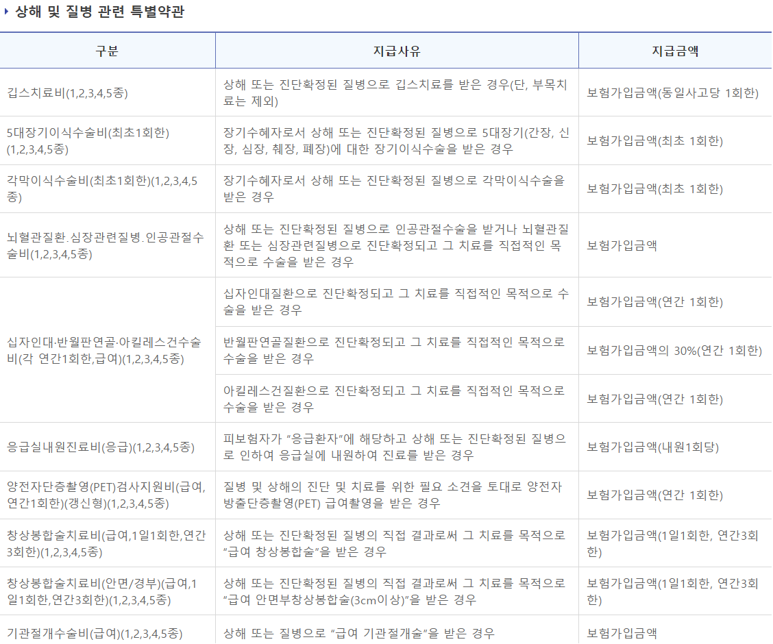 MG손해보험 건강보험 보장내용