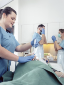 2. 검사실로 이동하여 입안에 마취제를 바르고, 목에 튜브를 끼워 호흡을 돕습니다.