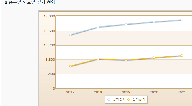 실기시험 합격률이며, 2021년 기준 실기시험 응시자 수는 16,135명으로 그 중 합격자는 7,731명입니다.