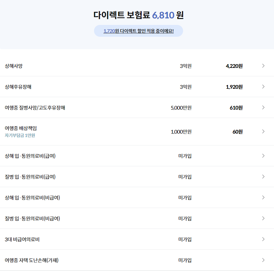 - 국내여행 보험은 여행 기간, 보장 내용, 연령 등에 따라 보험료가 달라집니다.