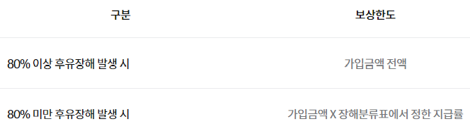 ① 지급해 드리는 보험금은 아래와 같으며 후유장해 지급률은 보험약관의 장해분류표를 기준으로 산정합니다.