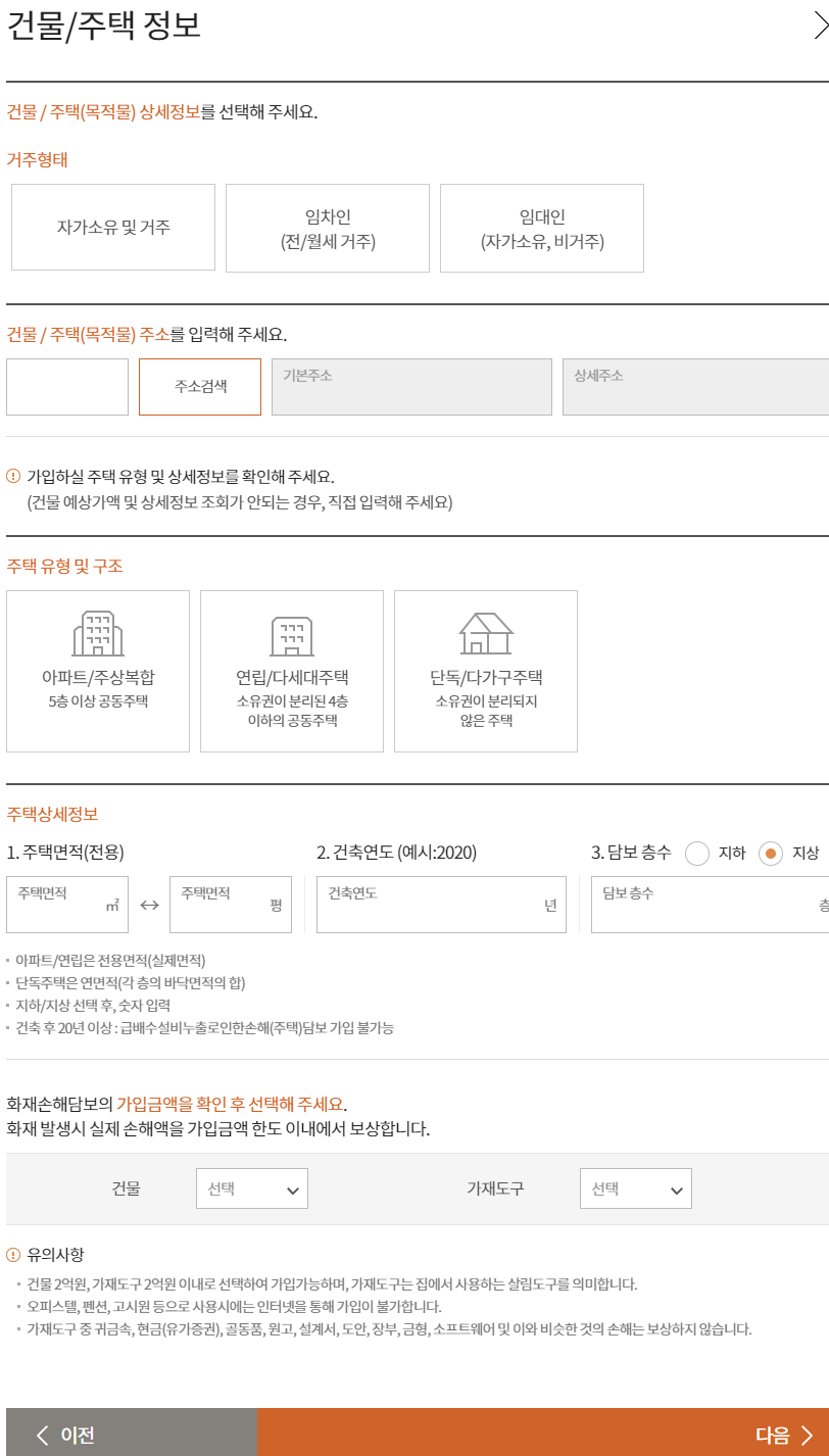 주택 정보를 입력하면 보험료가 바로 계산됩니다.