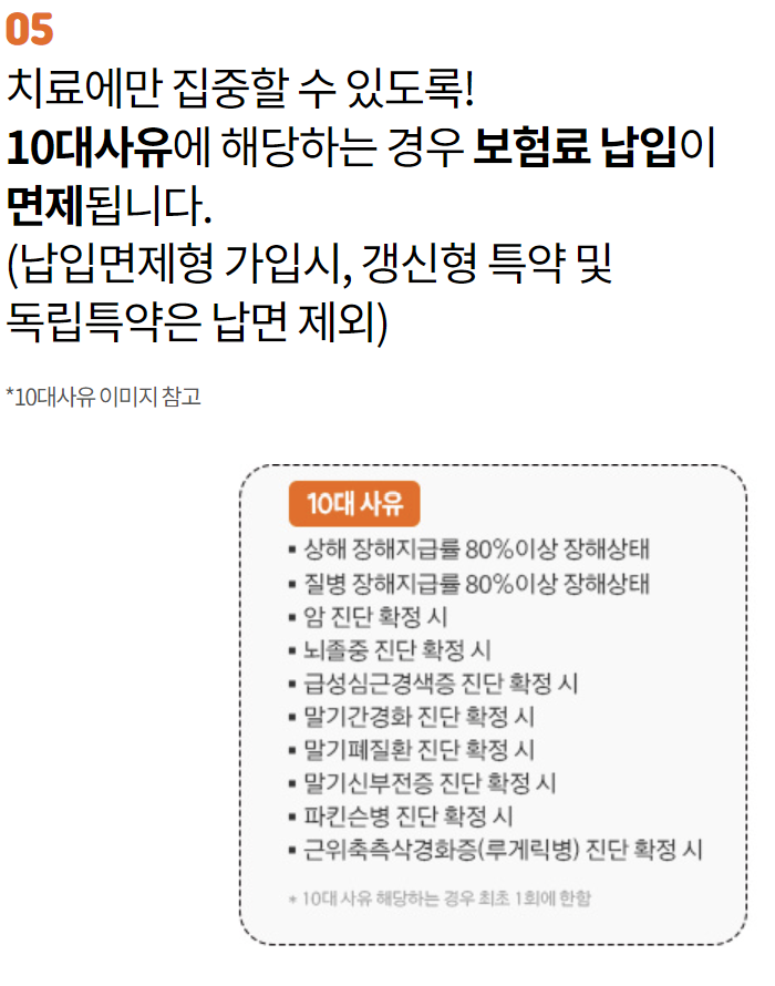 | 보험료납입면제 대상보장 (10대사유) |