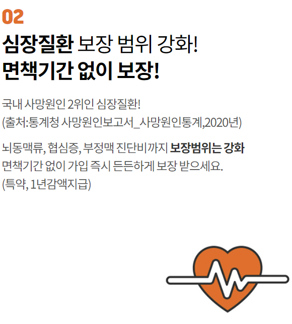 | 심혈관특정질환Ⅰ진단비 | 약관에서 정한 "심혈관특정질환Ⅰ"으로 진단확정된 경우 보험가입금액 지급(최초 1회에 한하며, 계약일부터 경과기간 1년미만시 보험가입금액의 50% 지급) | 500만원 |