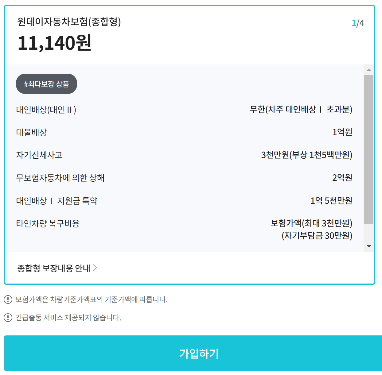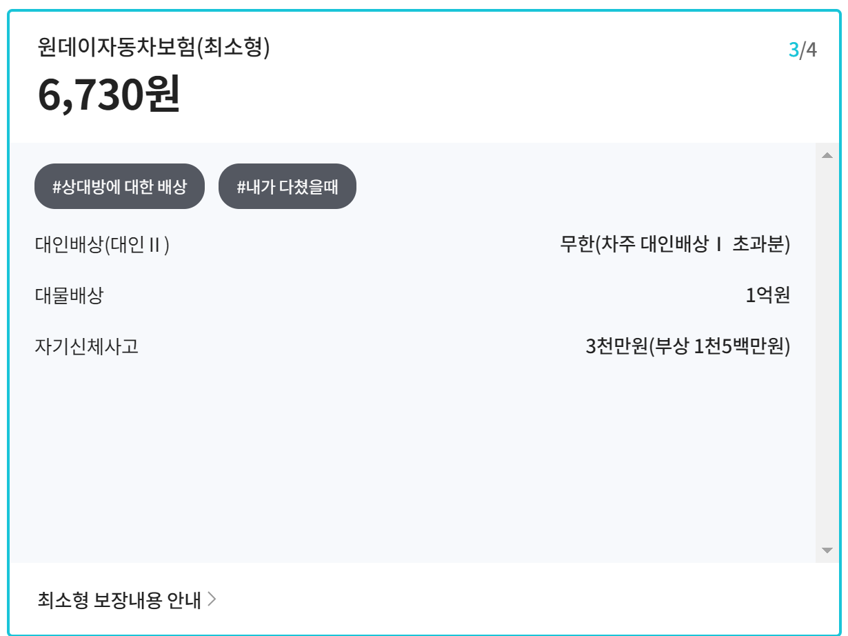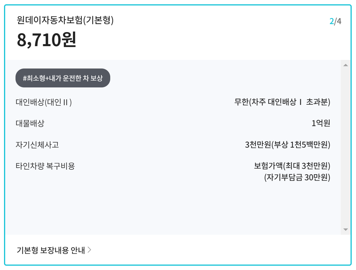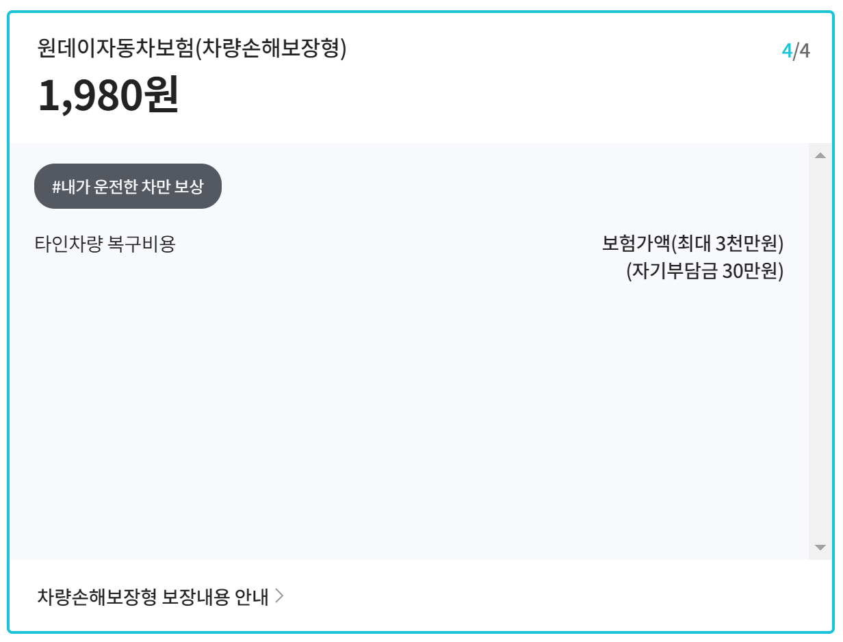 하나손해보험 원데이자동차보험 특징 보장내용 보험료 계산방법