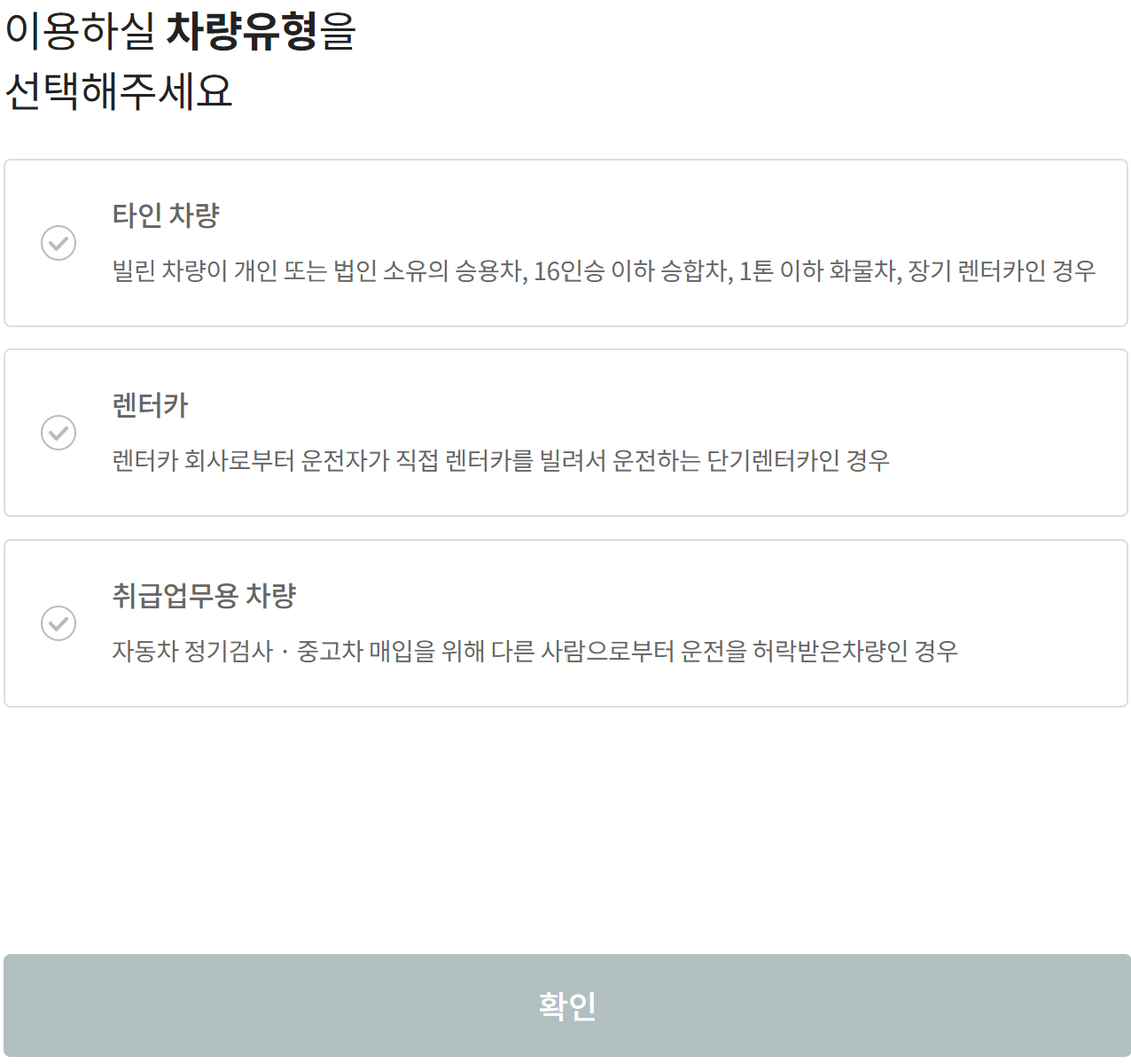 차량유형 선택 후 확인을 누릅니다.