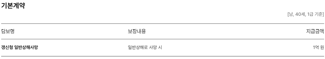 | 갱신형 질병사망 | 질병으로 사망 시 (가입 후 1년 미만 50% 지급) |