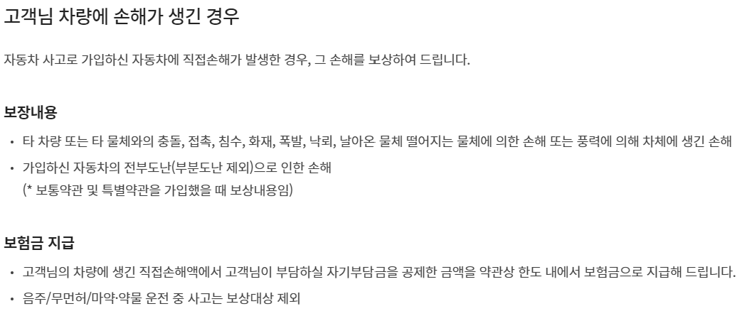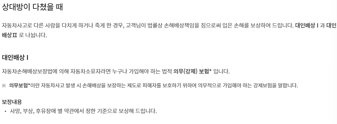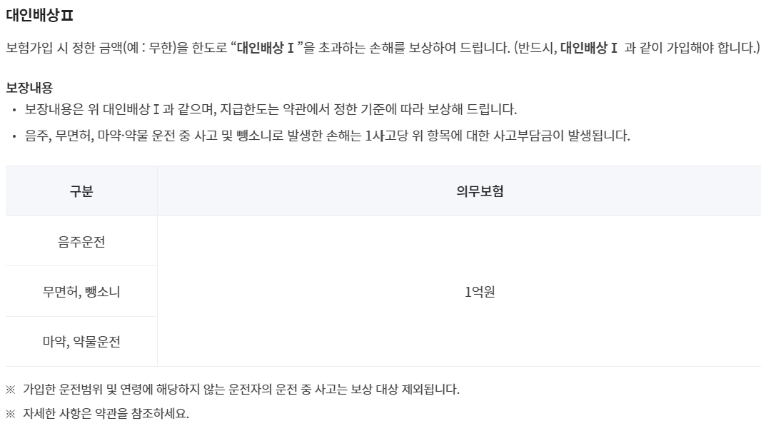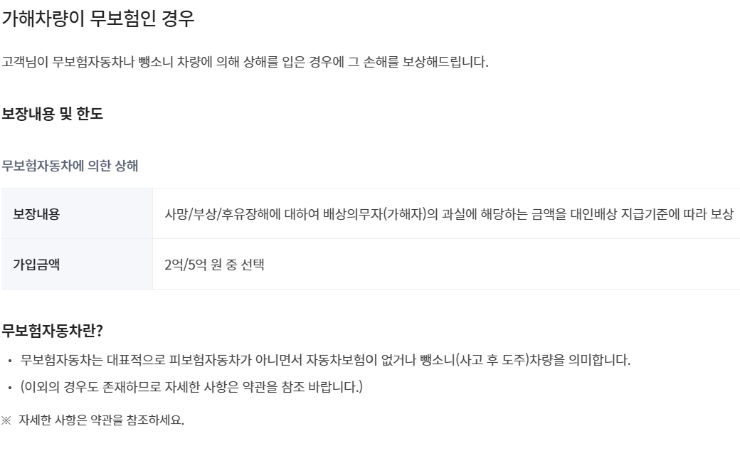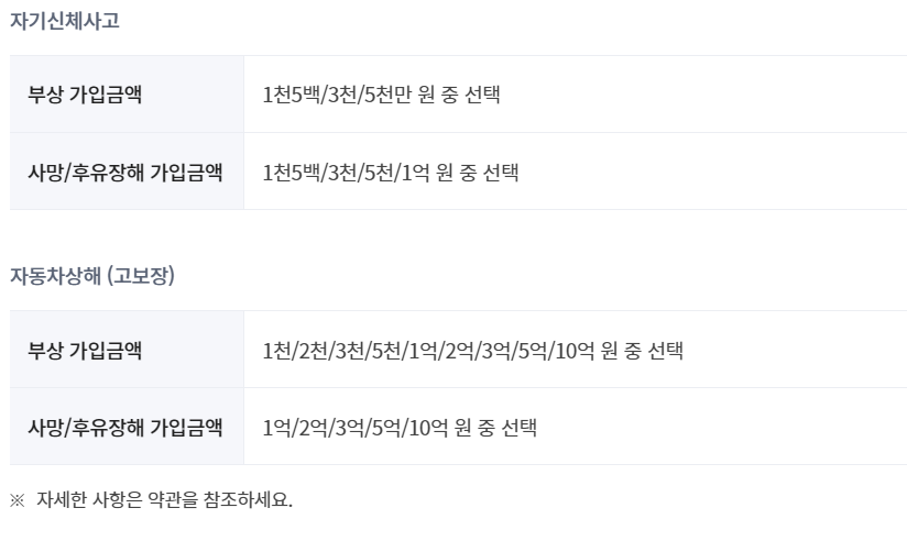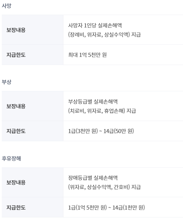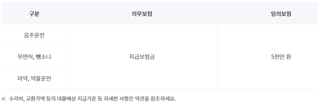 - 형사적인 책임을 위한 세 가지 보장(교통사고 처리 지원금, 벌금, 변호사 선임비)을 확인하세요.
