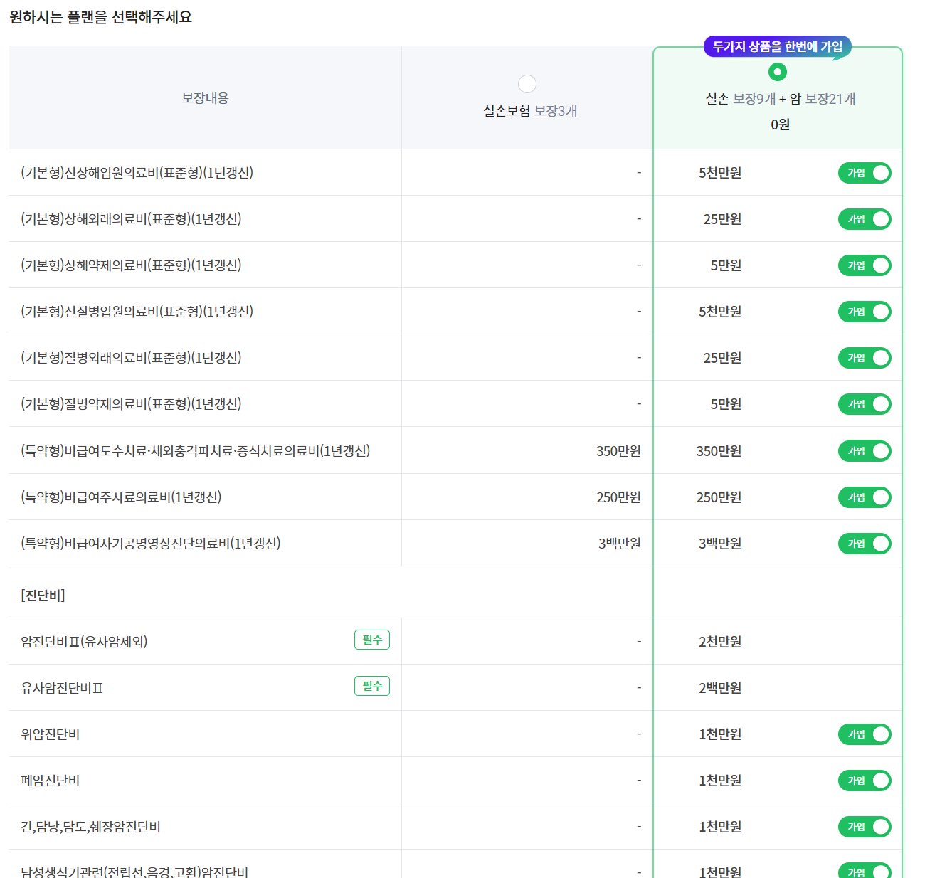 보험료는 사람마다, 플랜마다 다 다르므로 직접 조회해보시면서 확인해보시기 바랍니다.