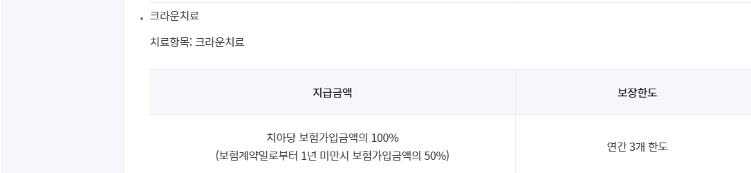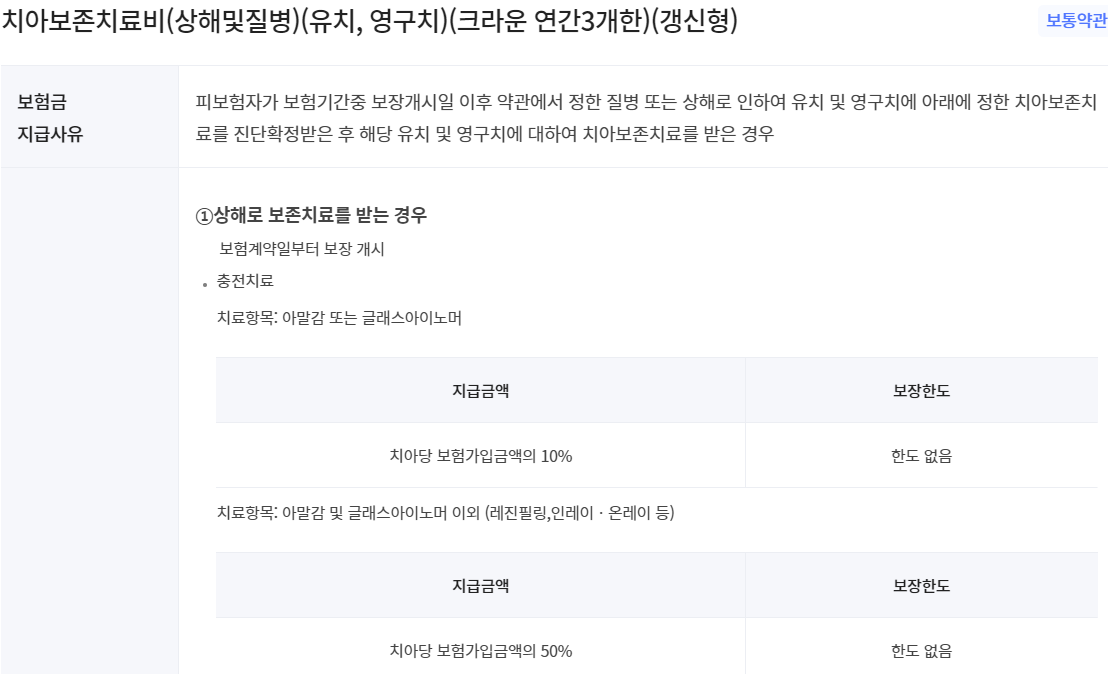 치아보존치료비(상해및질병)(유치, 영구치)(크라운 연간3개한)(갱신형)