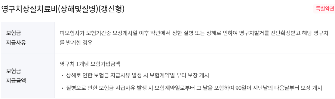 영구치상실치료비(상해및질병)(갱신형)