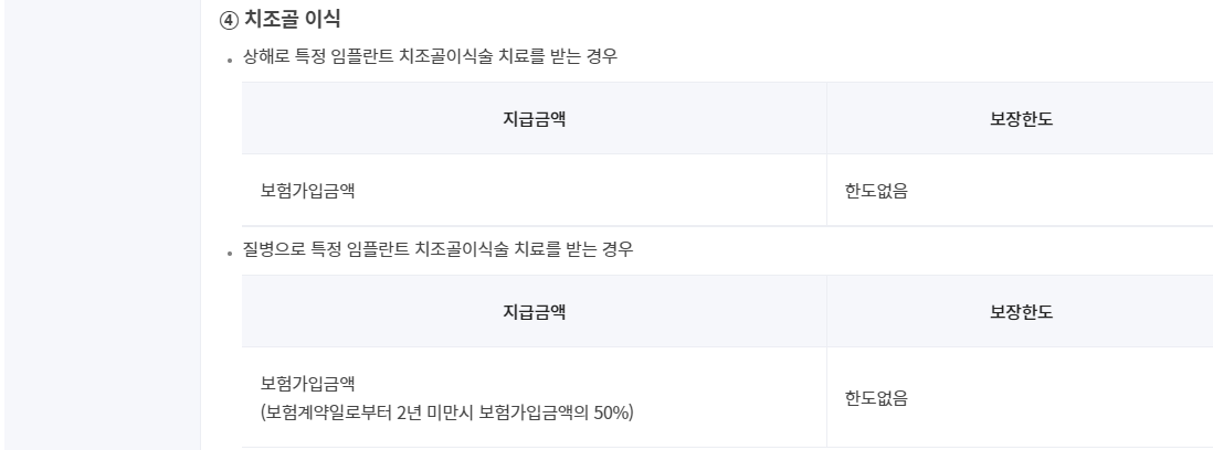 영구치특정임플란트치조골이식술치료비(상해및질병)(갱신형)