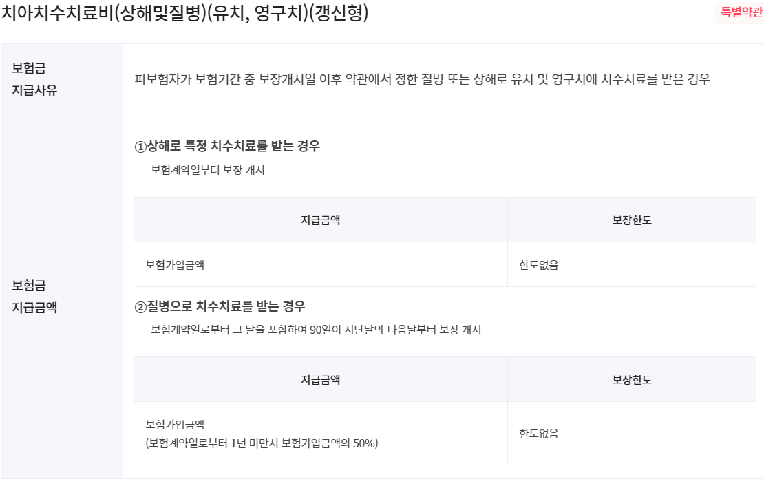 치아치수치료비(상해및질병)(유치, 영구치)(갱신형)