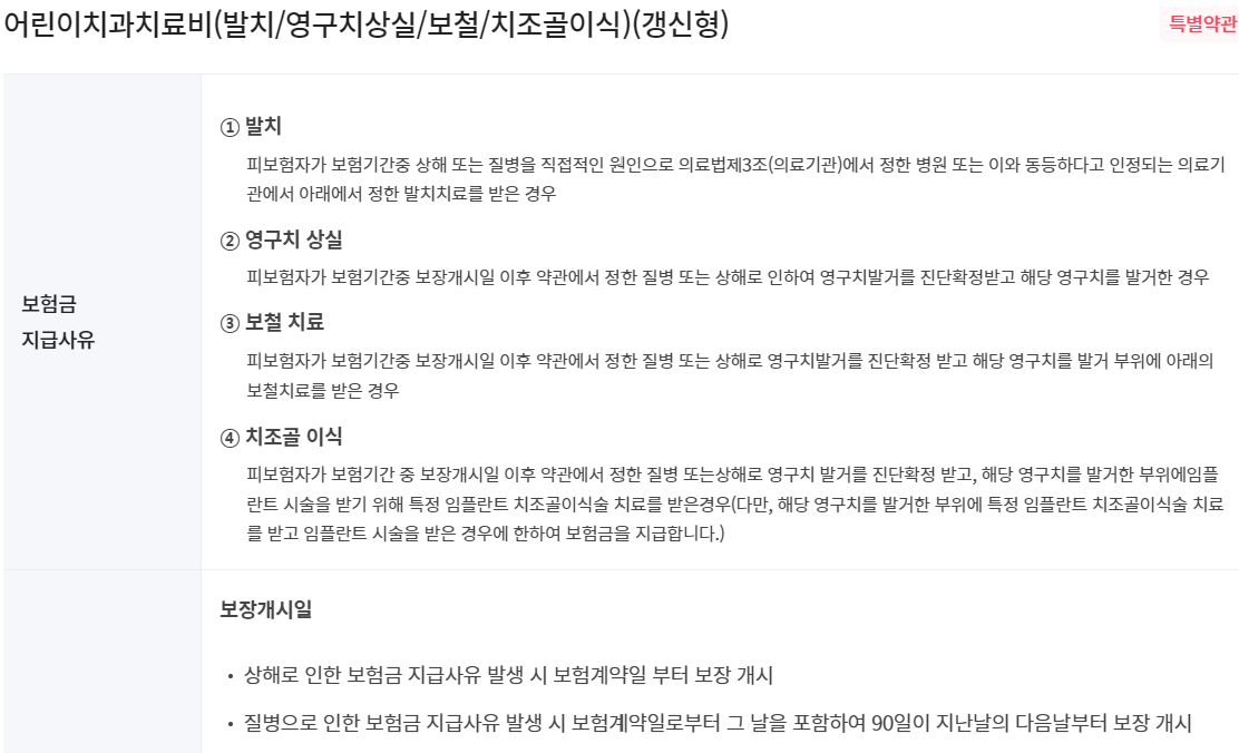 어린이치과치료비(발치/영구치상실/보철/치조골이식)(갱신형)