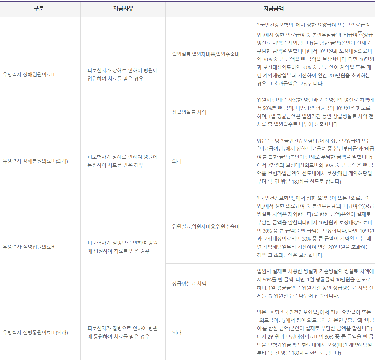 - 주1) 1년만기 1년납 기준으로 최대 3년동안 매년 자동갱신되며, 3년이후 재가입을 통해 100세까지 보상받으실 수 있습니다.