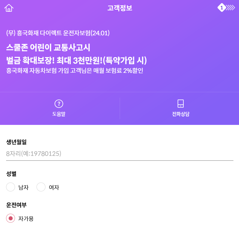 흥국화재 다이렉트 운전자보험 보험료 보장내용 알아보기