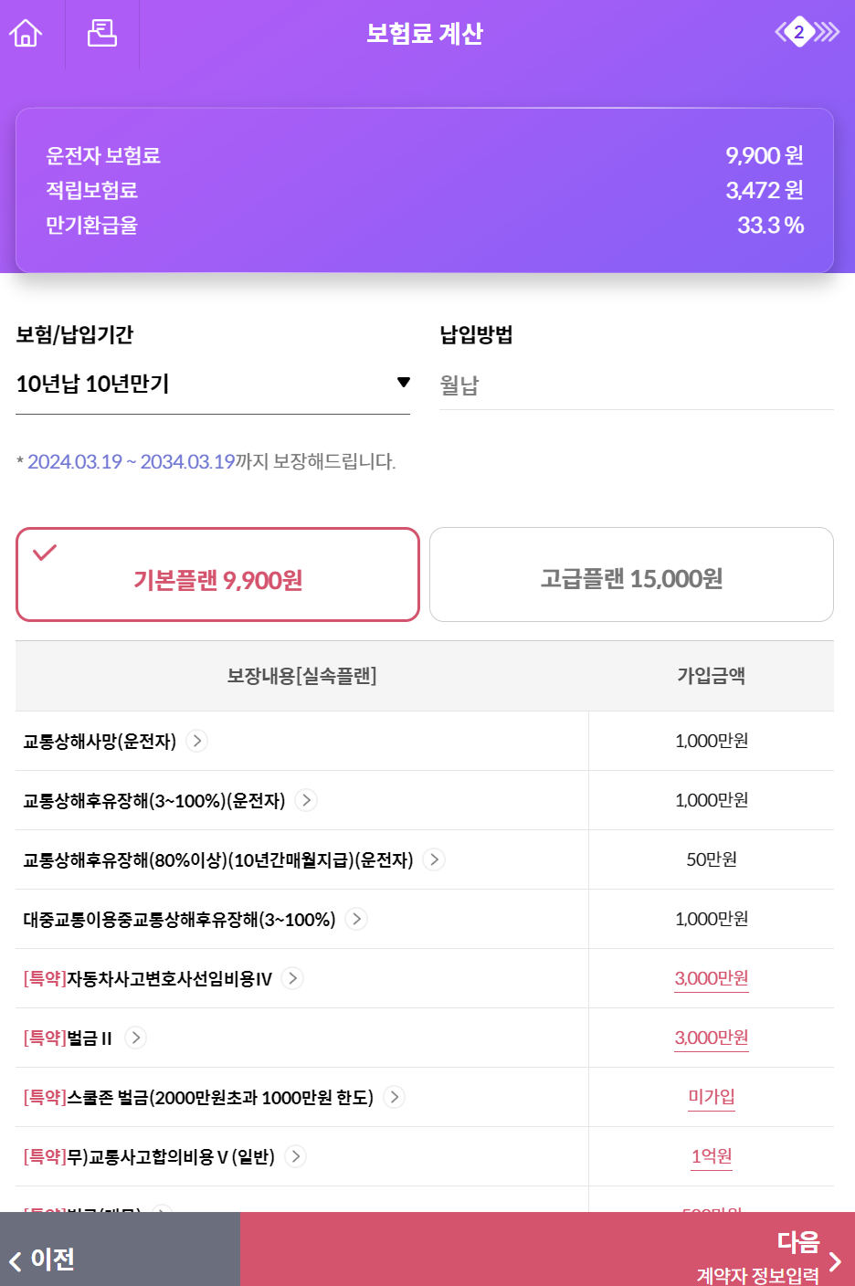 보험료는 특약 가입 여부, 생년월일, 성별, 납입기간, 납입방법, 보험기간 등 여러 조건에 따라 달라지므로 직접 조회해보시면서 추천합니다.