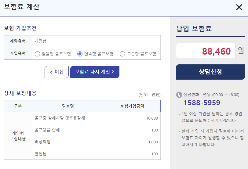 MG손해보험 골프보험 특징 보장내용 보험료 계산방법 알아보기