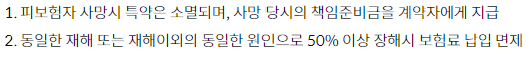 - 동일한 재해 또는 재해이외의 동일한 원인으로 50% 이상 장해시 또는 암보장개시일 이후 최초의 암(소액암 제외)으로 진단 확정시 보험료 납입면제