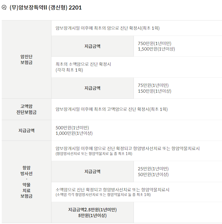 - 소액암 : 갑상선암, 기타피부암, 대장점막내암, 제자리암, 경계성종양