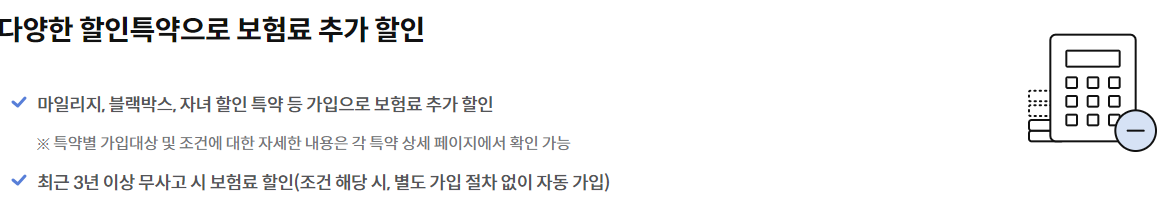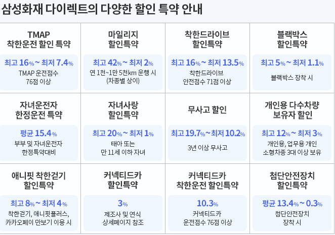 위 할인특약은 다양하게 적용됩니다.